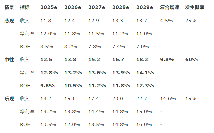 乐观情景:成功并购新品牌(如设计师童装),成人装爆发增长(占比35%+),供应链改革显效(存货周转降至200天)。收入增速跃升至14.6%,规模效应推高利润率。