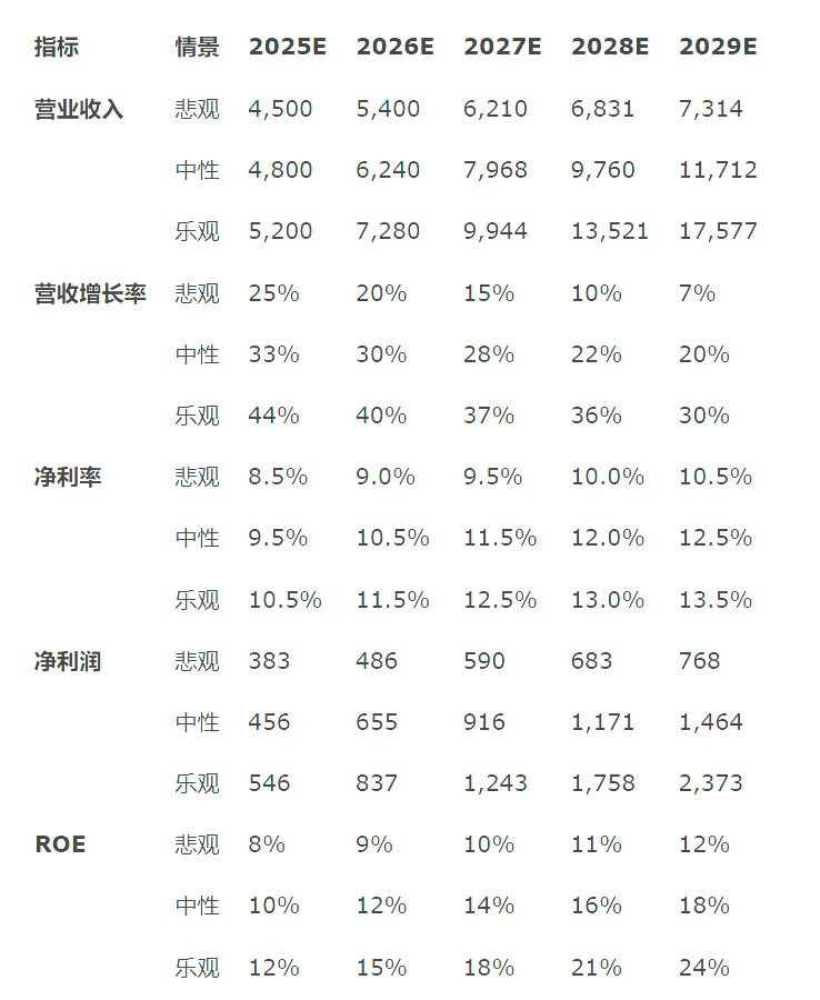 长期(2029年以后):随着行业成熟和竞争格局稳定,公司净利率稳态值预计可达12-14%。这一水平高于当前行业平均净利率(5-8%),反映了公司作为行业龙头的竞争优势和品牌溢价能力。