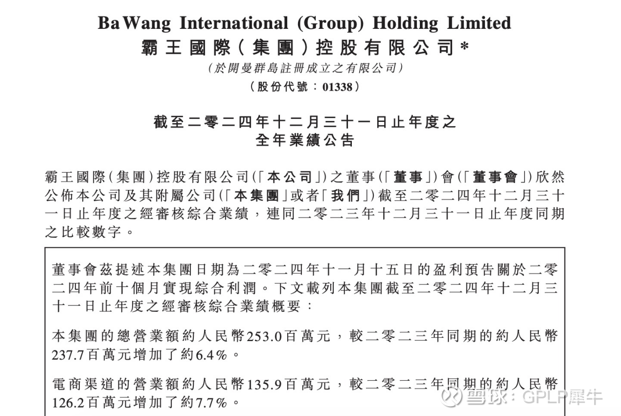 事实上,霸王集团这种压力2024年上半年已现端倪——彼时霸王集团曾发布盈利预警,预计上半年净利润同比降幅高达70%-80%,全年业绩最终未能扭转颓势。