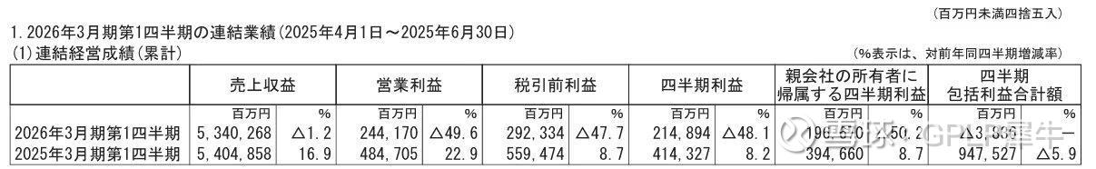 近日,本田汽车公布了2026财年第一财季(2025年4月至6月)财报,数据显示,本田汽车第一财季销售净额为5.34万亿日元(约合2600.53亿元),同比减少1.2%;经营利润为2441.7亿日元(约合118.91亿元),同比大幅减少49.6%;净利润更是锐减至1966.7亿日元(约合95.78亿元),同比减幅高达50.2%。