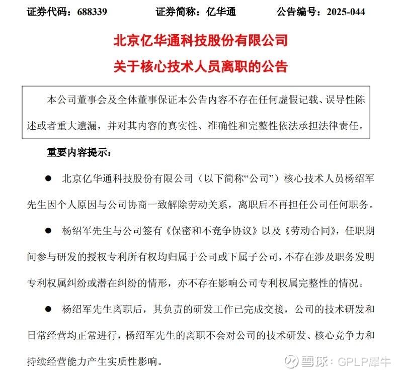 就在9月5日晚间,亿华通还披露了关于核心技术人员离职的公告。根据公告,核心技术人员杨绍军因个人原因与亿华通协商一致解除劳动关系,离职后不再担任亿华通任何职务。
