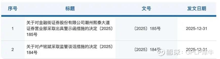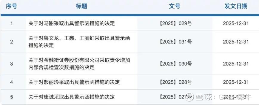 2025年12月31日,内蒙古证监局及广东证监局对金融街证券主体及其下属营业部、7名执业人员共发布7张“罚单”。