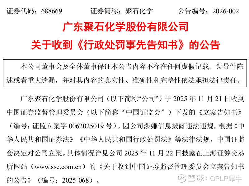 聚石化学公告,因公司及其子公司通过虚假贸易虚增营业收入1.568亿元、虚增营业成本1.585亿元、虚减利润166.289万元,占当期相关财务数据比例较高,涉嫌信息披露违法违规。广东证监局拟对公司罚款240万元,并对时任董事长陈钢等多名高管分别处以80万至180万元不等的罚款。公司已进行初步整改,调减涉及的虚假贸易收入与成本。