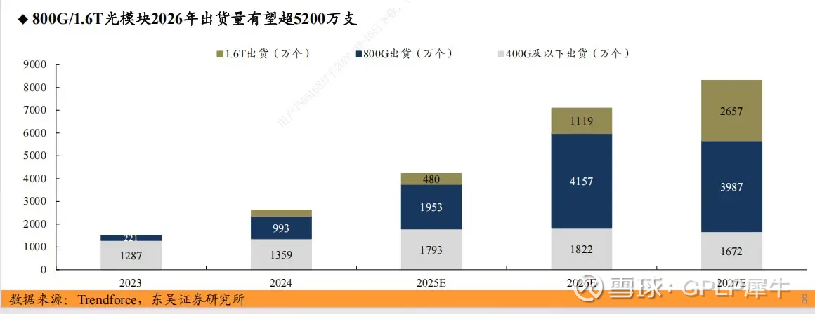 中信建投认为,2026年,800G光模块需求预计将继续保持高速增长态势,而1.6T的出货规模也将大幅增长,3.2T光模块的研发也正式开始布局。