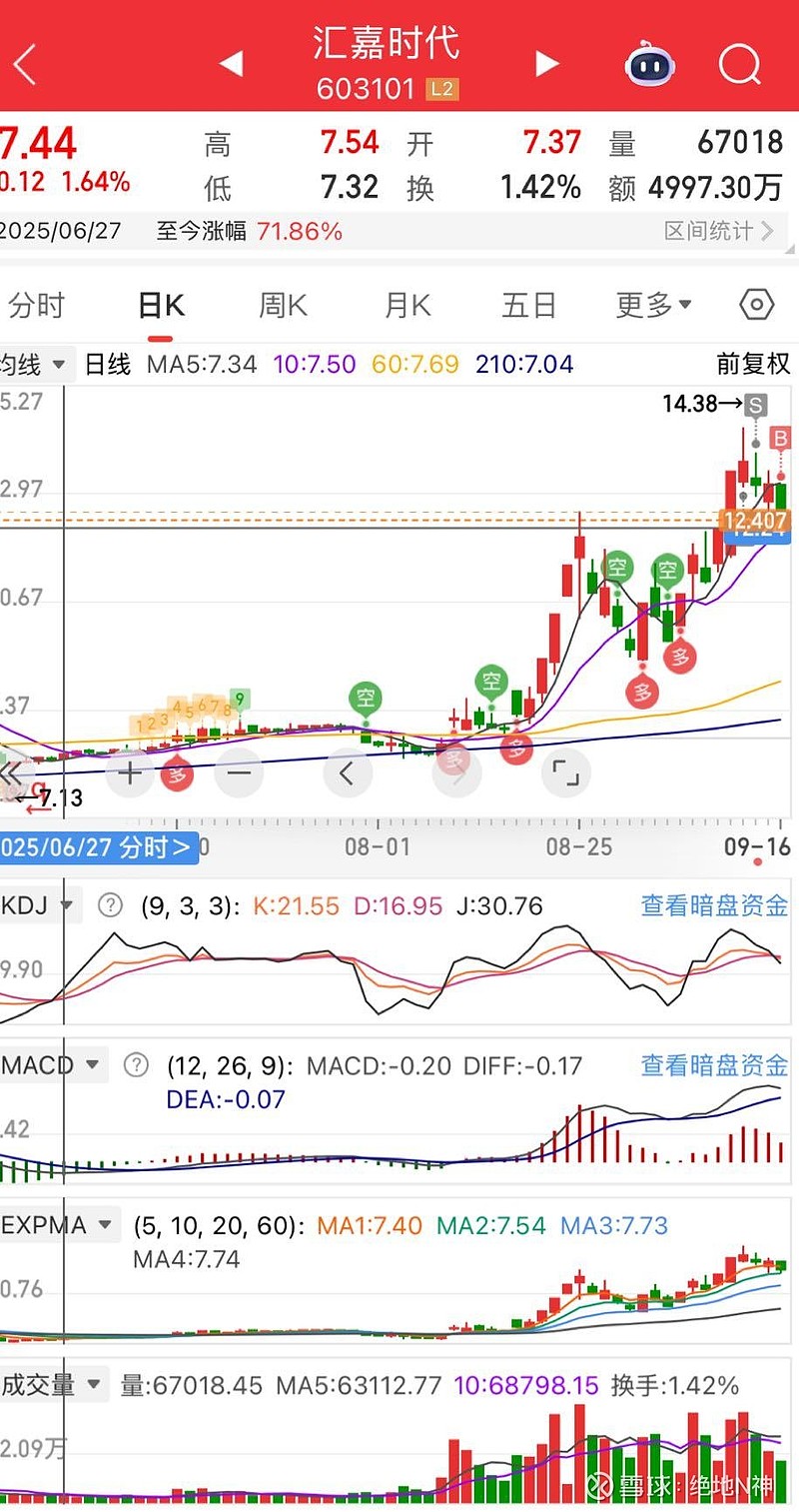 $汇嘉时代(SH603101)$ 明天还有一个涨停板哈,12块左右的生命线支撑很稳,看消费明天能补涨吧。