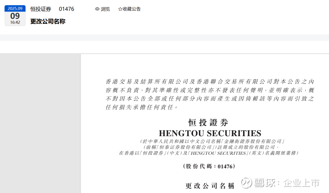 等香港的手续也办好后,他们会再发一个公告告诉大家,并且公司在香港股市的股票简称(目前是“恒投证券”,代码01476)也会跟着改变。