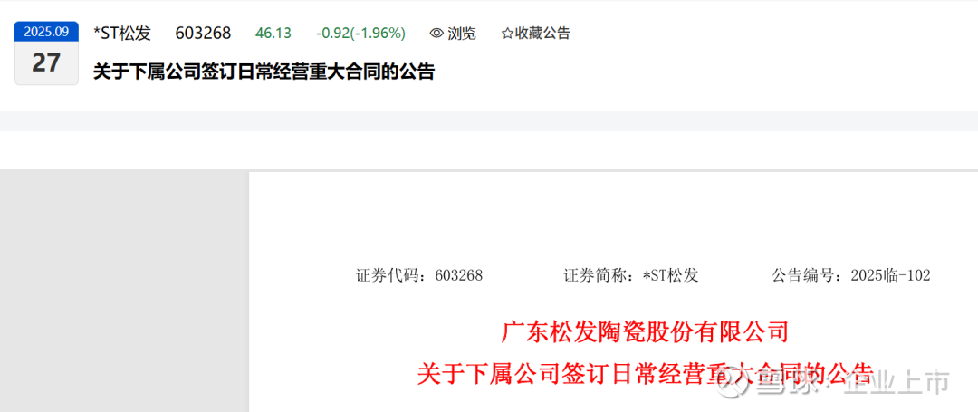 公司是 ST松发(股票代码603268),名字里带“ST”说明它经营得很不好,有退市风险。