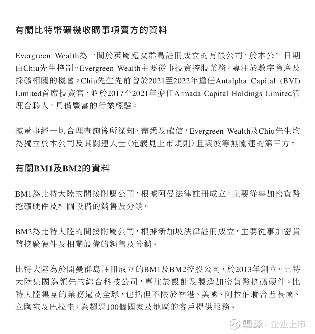 发奖金:如果未来矿机运行良好或者公司股价涨到一定水平(每股5.67港元),公司还会额外送给卖家大约1344万股股票作为奖励。