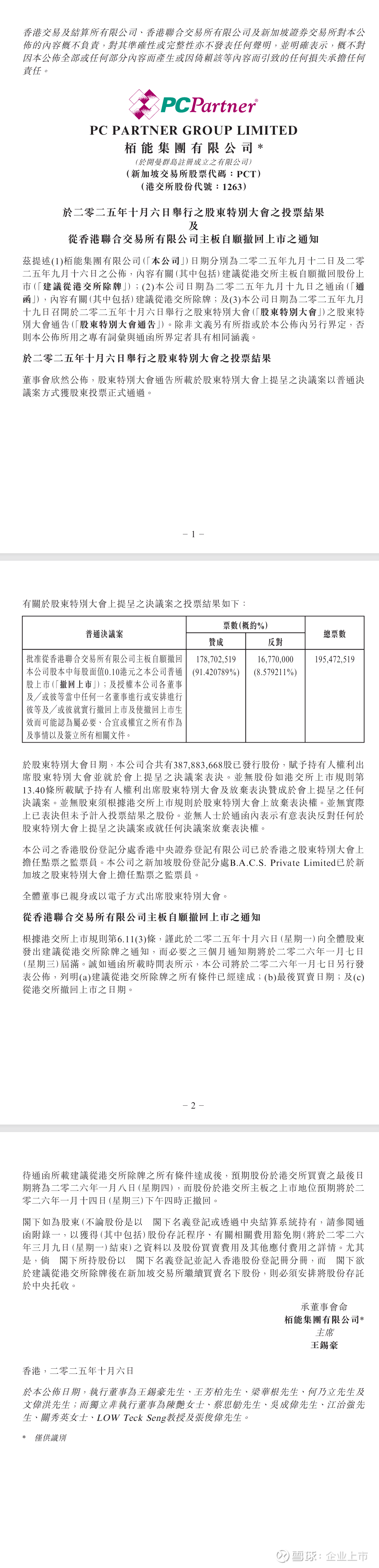 栢能集团(股票代码:港交所1263,新交所PCT)要主动从香港交易所退市了。