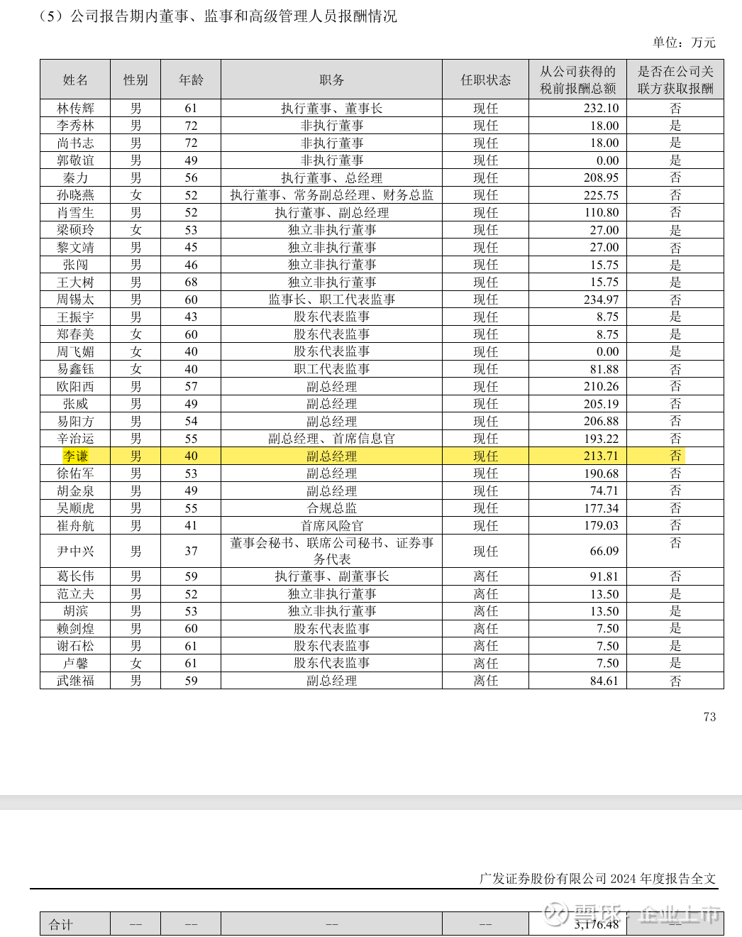 李谦,1984年10月生,自2021年7月起获委任为广发证券副总经理,现任的执行董事。