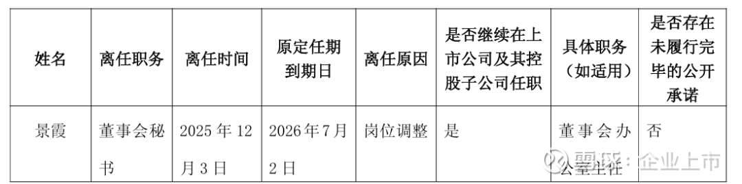 根据《公司法》《上海证券交易所股票上市规则》等有关规定,景霞女士的辞任报告自送达董事会之日起生效。景霞女士未持有公司股份,不存在应当履行而未履行的承诺,其岗位变动不会对公司正常经营活动产生不利影响。
