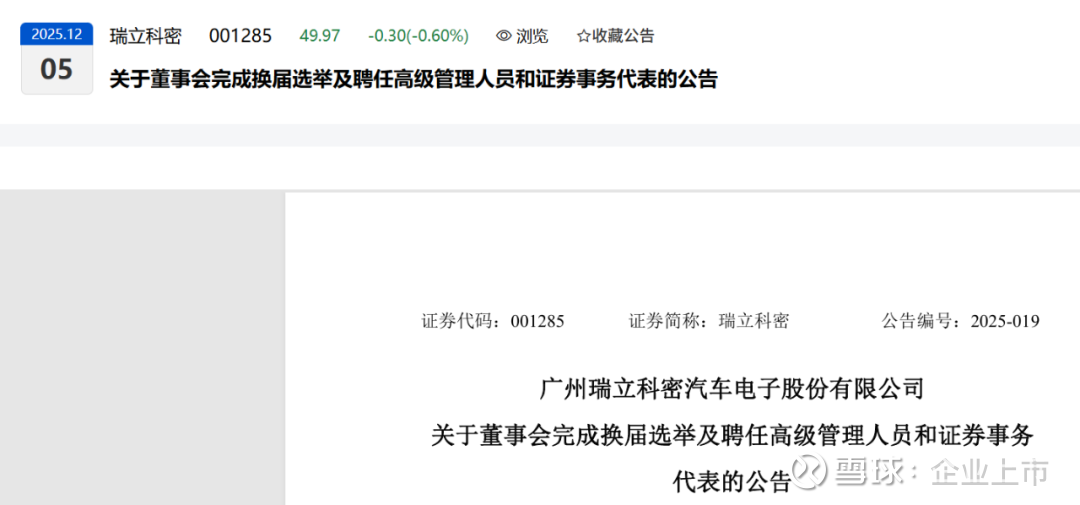 几乎在同一时间,瑞立科密(001285)也完成了董事会换届及高级管理人员的聘任。
