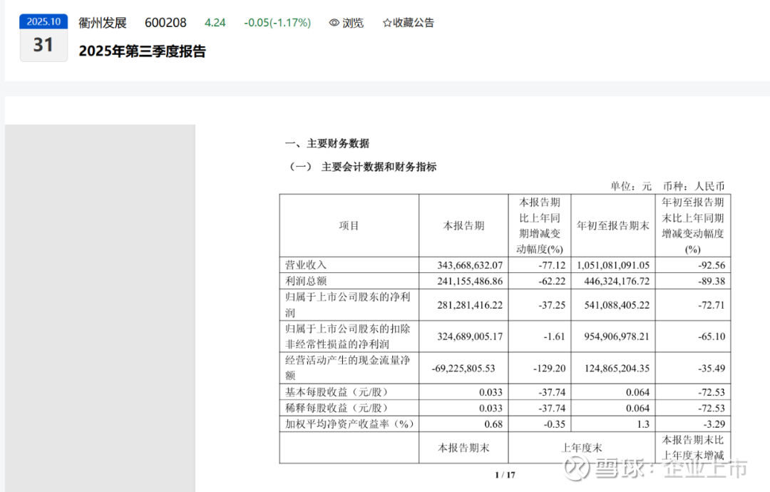 二、关于“2025年第三季度报告”(核心:主业惨淡,靠投资撑着)