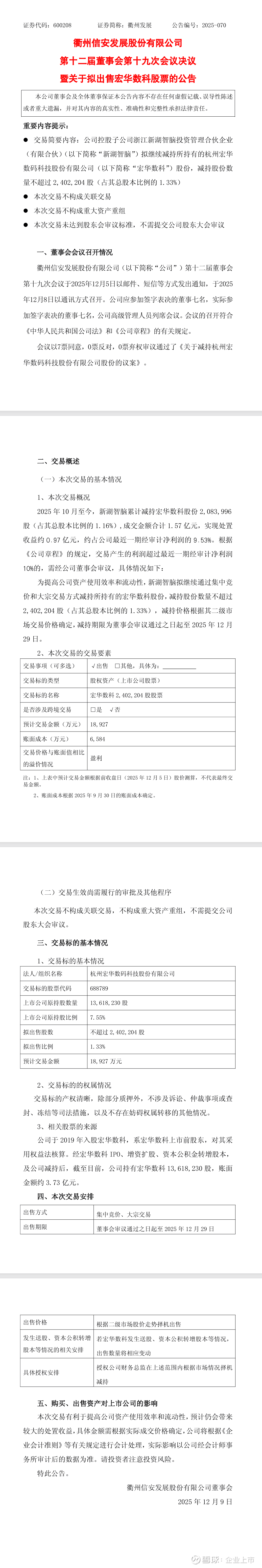 简单说: 衢州发展这家公司,它手下的一个投资公司(新湖智脑)打算继续卖掉一部分它持有的另一家上市公司“宏华数科”的股票。
