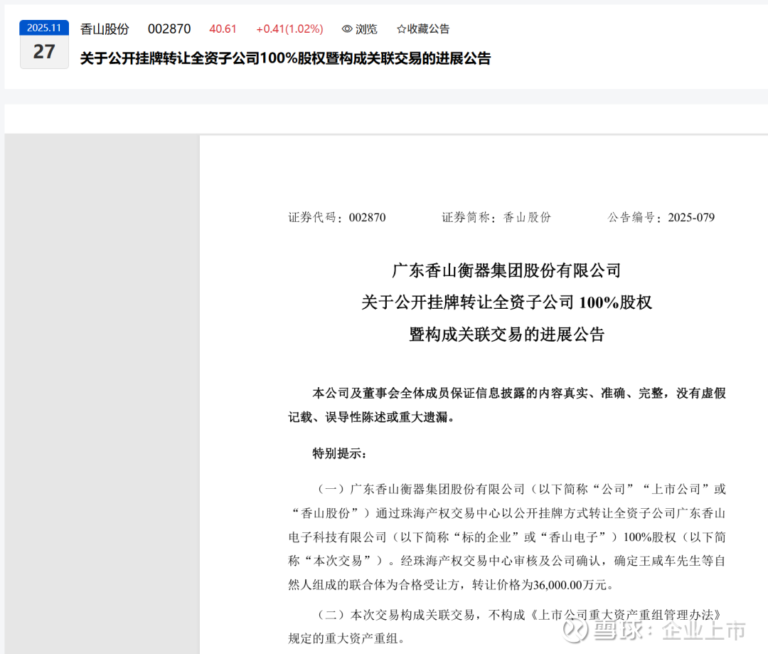 对香山股份(002870)而言: 它已经完全转型。从此以后,它就是一家总部在宁波的汽车零部件公司(做汽车智能座舱、充电桩等),跟“秤”再也没有关系。股票代码没变,但公司里里外外都换了。