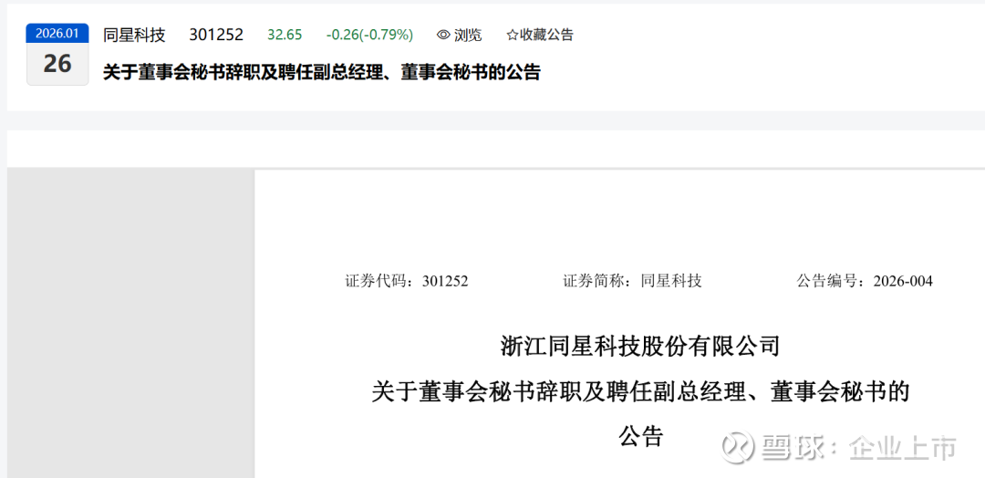浙江同星科技股份有限公司(以下简称“公司”)董事会于近日收到公司副总经理、董事会秘书梁路芳女士递交的书面辞职报告,因个人工作原因,梁路芳女士申请辞去公司董事会秘书职务,上述职务原定任期至第三届董事会届满之日止(即2026年8月22日),其辞职后将继续在公司担任副总经理职务。