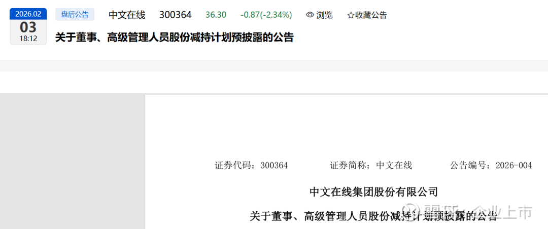 2月3日,中文在线发布公告,包括董事张帆、董事兼常务副总经理谢广才、首席运营官杨锐志、副总经理兼董秘、财务总监王京京在内的4位高管,计划在未来三个月内合计减持不超过65.79万股 。