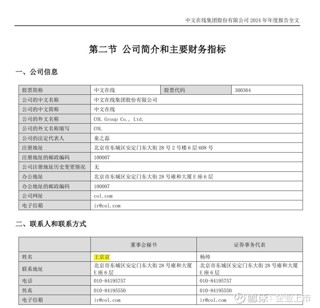 王京京女士,1980 年出生,中国国籍,无境外永久居留权,华中科技大学法学与管理学双学士学位及经济法专业硕士学位,具有法律职业资格和董事会秘书资格。2010 年加入中文在线,现任中文在线副总经理兼董事会秘书,同时兼任天津中文光之影文化传媒有限公司执行董事兼总经理、长春中文光之影文化传媒有限公司执行董事兼总经理、海南中文万年影视文化传媒有限公司董事、北京中文在线文化传媒有限公司监事、杭州四月天网络科技有限公司监事、杭州中文在线信息科技有限公司监事、中文在线(天津)文化发展有限公司监事、广州市四月天信息科技有限公司监事、邯郸中文在线文化发展有限公司监事、广州市迈步信息科技有限公司监事、杭州中文宇宙科技有限公司监事、海南中文在线宇宙科技有限公司监事、北京鸿达以太科技有限公司监事、辽宁野象科技有限公司监事、天津象舞科技有限公司监事、广西野象科技有限公司监事、安徽野象科技有限公司监事、上海多来米网络技术有限公司监事、北京中文在线教育科技发展有限公司监事、上海中文在线文化发展有限公司监事、湖北中文在线科技发展有限公司监事、株式会社COL JAPAN代表董事、Crazy Maple Studio, Inc. 董事、COL WEB PTE. LTD.董事、SEREAL PTE. LTD.董事、UNIREEl PTE. LTD.董事。