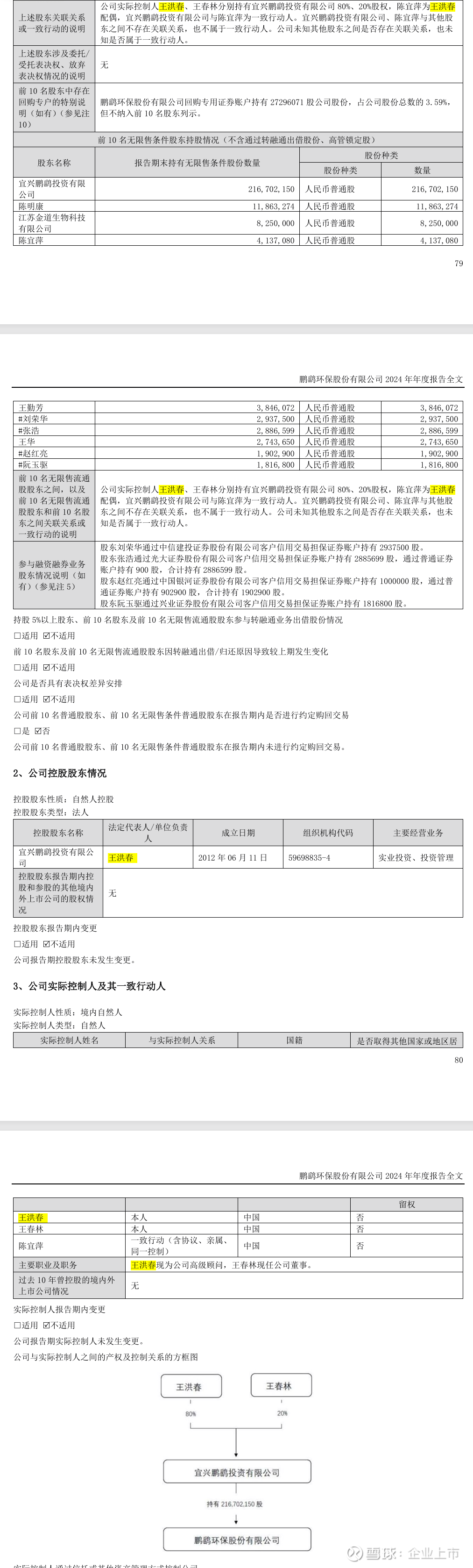 “灵魂人物”与公司深度绑定:王洪春是公司的创始人,1984年就创办了这家企业。虽然他现在不任职了,但他和他弟弟通过控股公司(鹏鹞投资)牢牢控制着公司,是共同实际控制人。他个人的声誉、法律风险,和公司是完全分不开的。