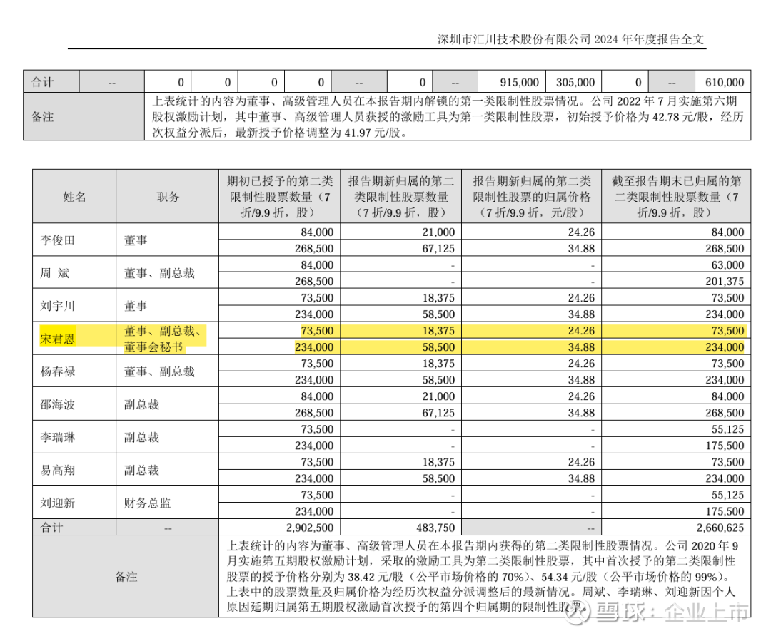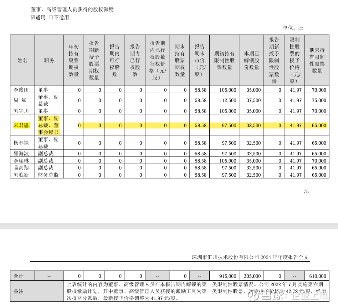 关键动作: 汇川技术上市后,为了激励高管持续把业务做大,推出了五到六期股权激励计划。宋君恩作为核心高管,每一期都拿份额。