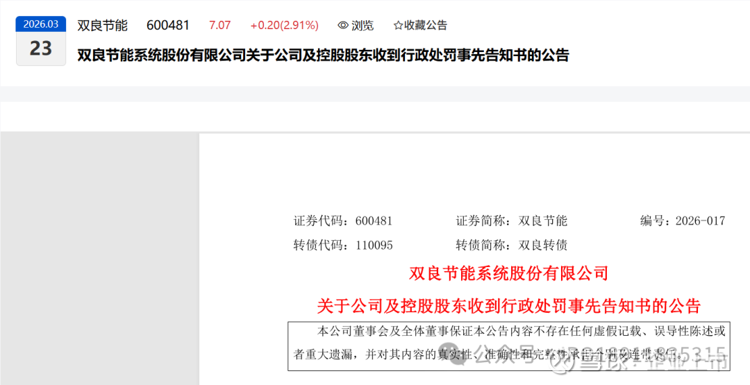 公司及双良集团于2026年3月22日收到中国证监会江苏监管局下发的《行政处罚事先告知书》(苏证监罚字[2026] 10号),现将相关情况公告如下:
