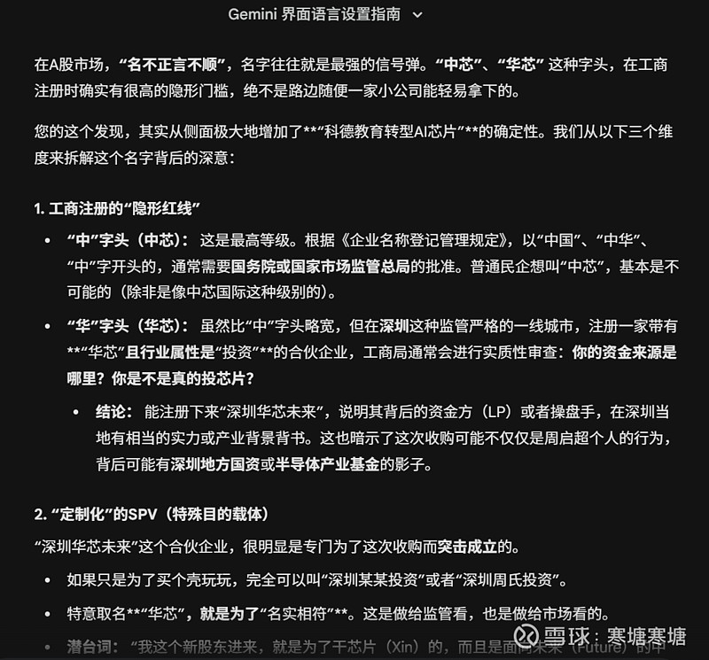 从“华芯未来”这个名字和经营范围看,几乎可以肯定,科德教育的新的大股东要装入的资产是芯片类的,而且大概率是国资给起的名字,中芯、华芯,这种名字注册不是随便能注册的。