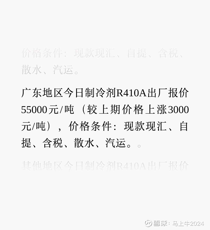 410上调3000至55000今天中jin公司制冷剂会议专家说四季度长协估计报价6万+,议价后小幅让渡定价市场有两个传闻,一是明年三代额度增发可能高达8万吨,二是明年品种间转换比例可能从现在的10%提高到20%-25%。$东岳集团(00189)$ $巨化股份(SH600160)$ $三美股份(SH603379)$
