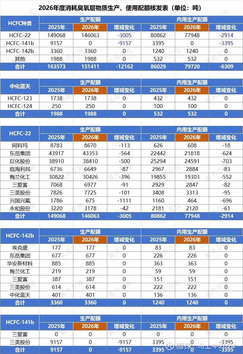 主要是几家小厂在优化调整。比如永和用1220吨R143a和1063吨R152a转换增加R32配额1171吨和134a2699吨,有点意思还同步转换增加R125配额805吨,因为他自己混配都不够用了