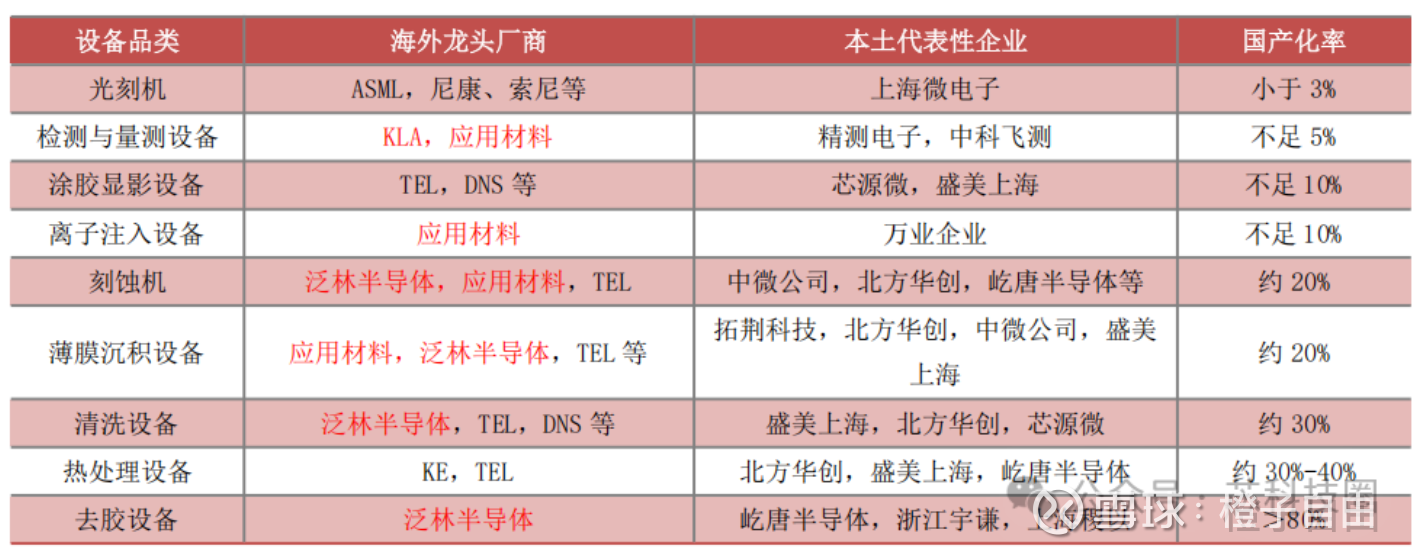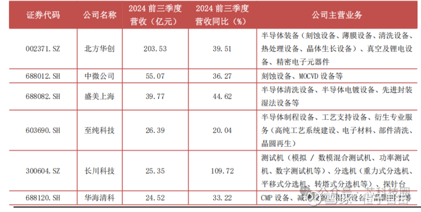 四、半导体设备国产替代格局(截至2024年第三季度)