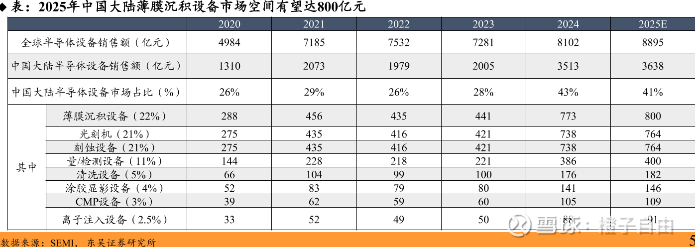 2>根据权威机构数据,2024 年薄膜沉积设备在集成电路设备资本支出中的占比为 23.0%,全球市场规模约 1,850 亿元 人民币。北方华创在薄膜沉积设备领域,已形成了物理气相沉积、化学气相沉积、外延、原子层沉积、电镀和金属有机 化学气相沉积设备的全系列布局。2025 年上半年,公司薄膜沉积设备收入超 65 亿元人民币。