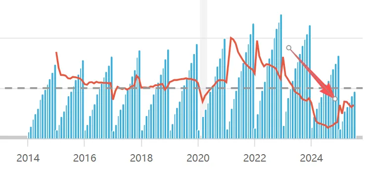 从这个角度去看就不难理解2022年各种“反垄断”之后的外资抛售潮,从2023年7月到2025年7月,外商直接投资连续3年增长为-4%,-29.64%,-13.37%,累计同比减少4成,