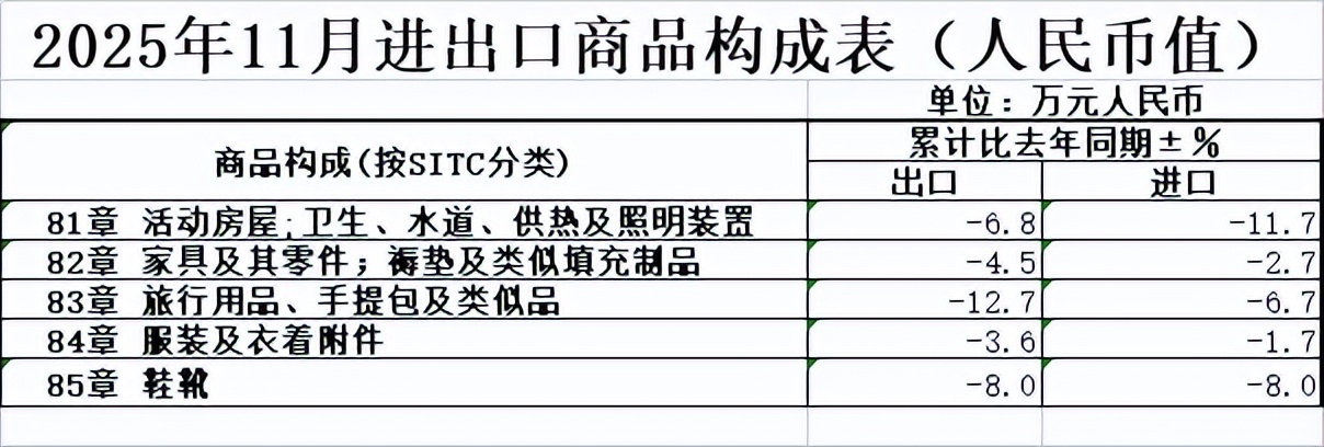 旅行用品出口下降12.7%。
