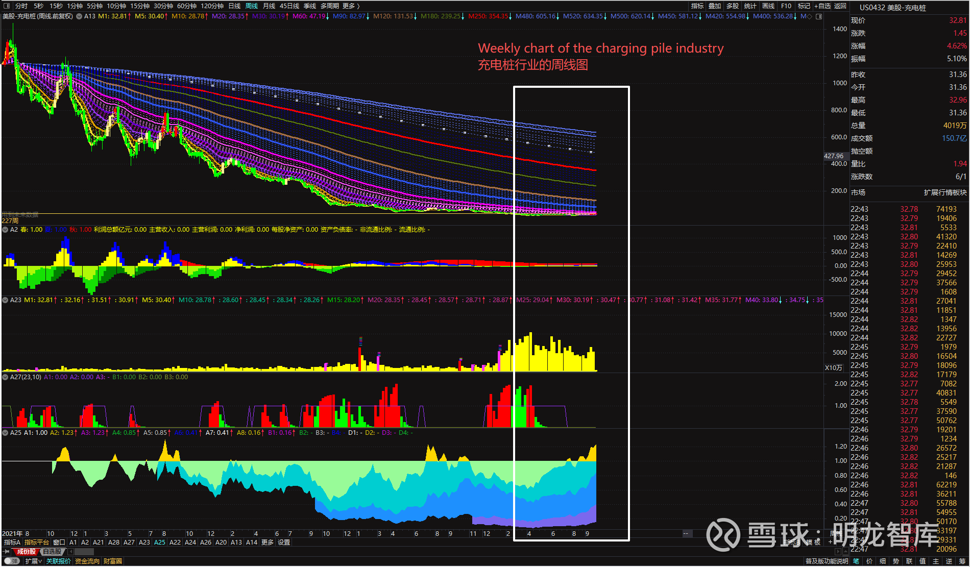 在我们确认充电桩行业在未来的30个月至60个月里会出现确定性的行业炒作行为之后,我们就可以对行业内所属的上市公司进行多周期趋势监测与分析。并且通过对成交量换手率以及上市公司经营能力的评估选择最具有投资潜力和炒作空间的上市公司作投资目标。
