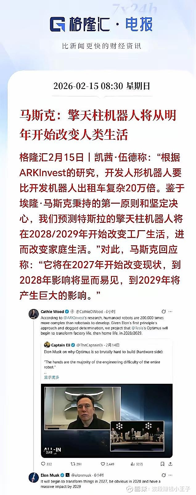 根据测算,人形机器人复杂度是无人车的20万倍,原本预测2028年才改变生活。马斯克直接硬刚,2027年就改写行业现状,这份确定性给市场打了强心针。