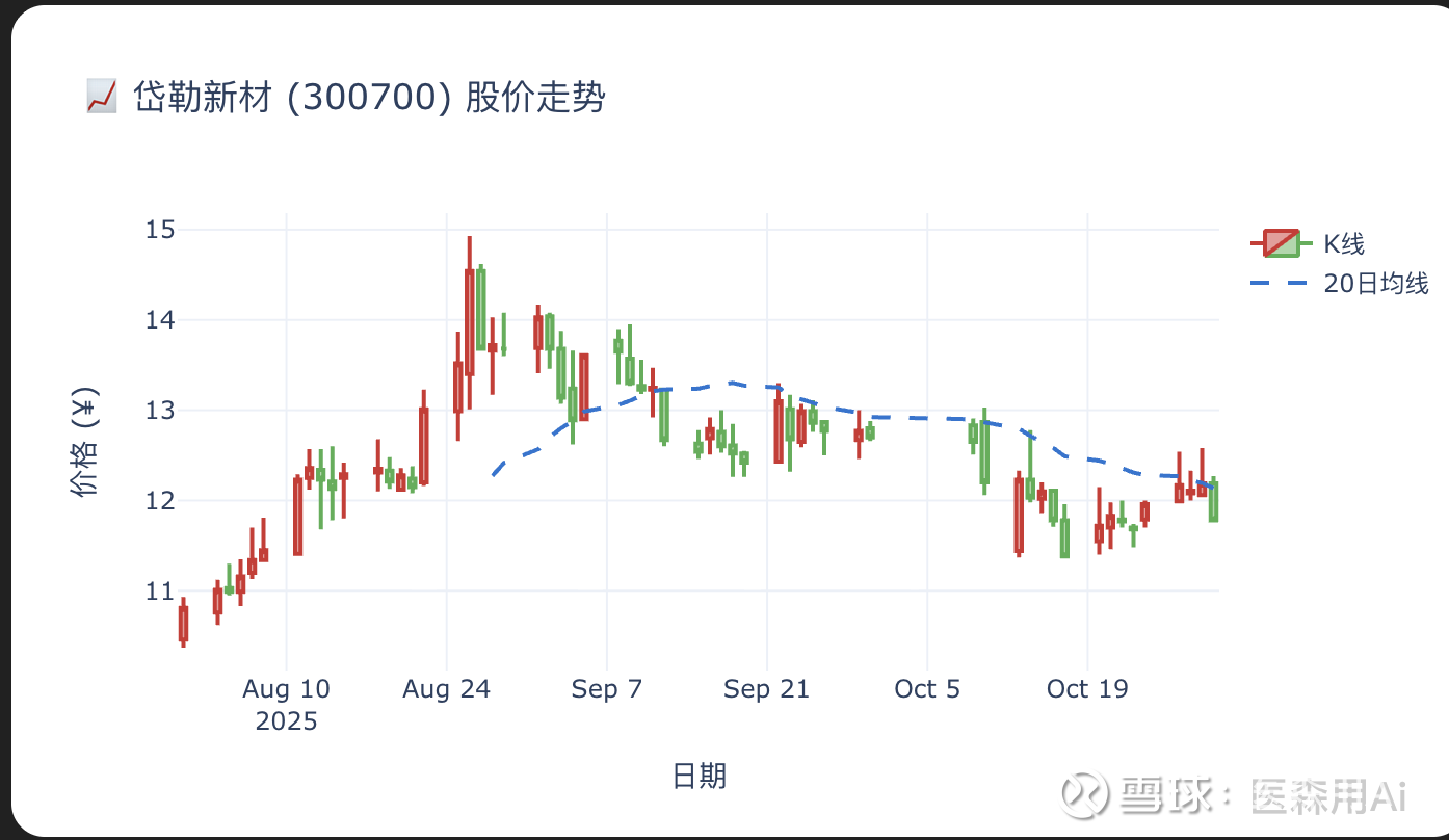 ———昨日看着一群股票下跌,$岱勒新材(SZ300700)$上午涨的挺猛,没忍住跟了进去……然后这两天就干掉我快2w块。真的是追涨杀跌的典型例子,那既然买入了我得看看到底它还有没有机会。但翻遍同花顺和雪球也没看到合理的。于是动用自己的Agent进行了以下分析,感觉很中肯。