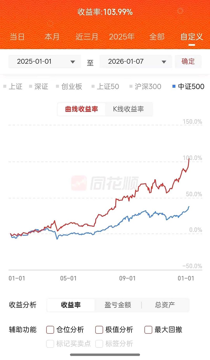 展示账户去年以来的收益率破百了