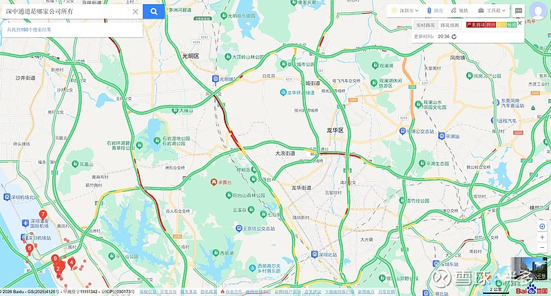 看了下现在晚上8:40,最上一条横向路为外环高速,下面横向连接深中通道的路就是机荷高速了。
