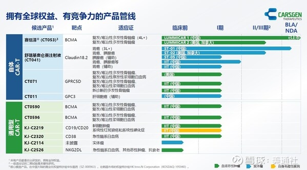 KJ-C2219 - 靶向CD19/CD20,用于治疗血液恶性肿瘤及自身免疫性疾病。2024年底启动一项针对复发/难治性B细胞非霍奇金淋巴瘤(R/R B-NHL)的研究者发起的临床试验,2025年上半年启动一项针对系统性红斑狼疮(SLE)和系统性硬化症(SSc)的研究者发起的临床试验。 KJ-C2320 - 靶向CD38,用于治疗急性髓系白血病(AML),2024年底启动一项研究者发起的临床试验。 KJ-C2114 - 用于治疗实体瘤。 KJ-C2526 - 靶向NKG2DL,用于治疗AML、其他恶性肿瘤,以及抗衰老。2025年2月25日,科济药业与珠海横琴软银欣创股权投资管理企业(有限合伙)旗下管理的基金达成协议。根据该协议,投资者同意以现金对价人民币80,000,000元认购优恺泽生物医药(上海)有限公司("优恺泽")的新增注册资本,占优恺泽增资后注册资本的8%。本次增资完成后,科济药业于优恺泽的股份将由100%稀释至92%。