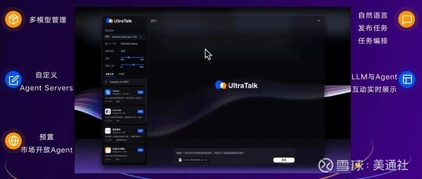 UltraTalk:作为新一代知识库智能体,提供从数据处理、知识向量化到应用构建的一站式解决方案,支持多种主流大语言模型接入,配备直观的可视化编排工具和智能语义检索系统。图:UltraTalk核心功能