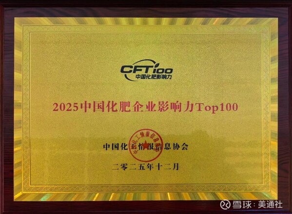长沙2025年12月30日 /美通社/ -- 2025年12月25-26日,在湖南省长沙市召开的“2025化肥行业高质量发展会议暨化肥企业影响力Top100系列”发布会上,中化化肥位列“2025中国化肥企业影响力Top100”榜单第5名,同期发布的“2025中国生物肥料企业影响力Top50 ”榜单中,中化化肥荣登第1位,彰显了公司的综合实力,以及在生物肥料研发与产业化方面的深厚积淀与创新引领能力。