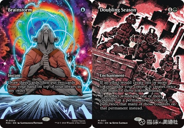 神龟们化身万智牌,凭借神龟之力与坚韧身躯守护街头,对抗施瑞德,同时也不忘调皮捣蛋——全新机制奇袭,让牌手出击迅猛、遁入夜色;而突变剂衍生物则能带来全新的忍者对战体验。更有极具收藏价值的卡牌,包括凯文•伊斯特曼亲笔签名的珍藏单卡。