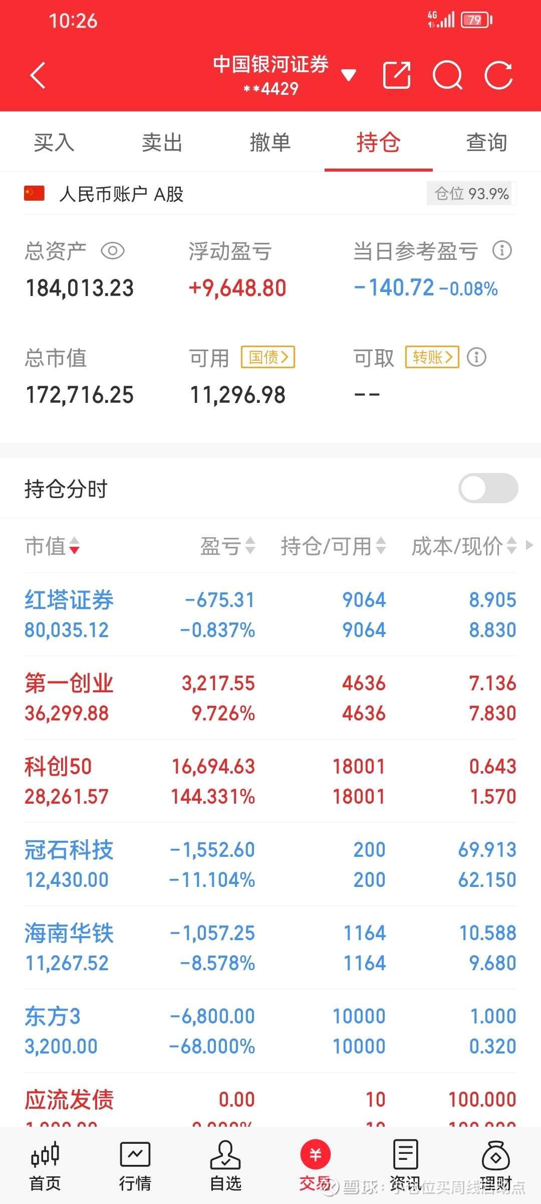 $红塔证券(SH601236)$ $科创50ETF(SH588000)$ $第一创业(SZ002797)$ 截止到9.30日,市值83.6万,负债22万,