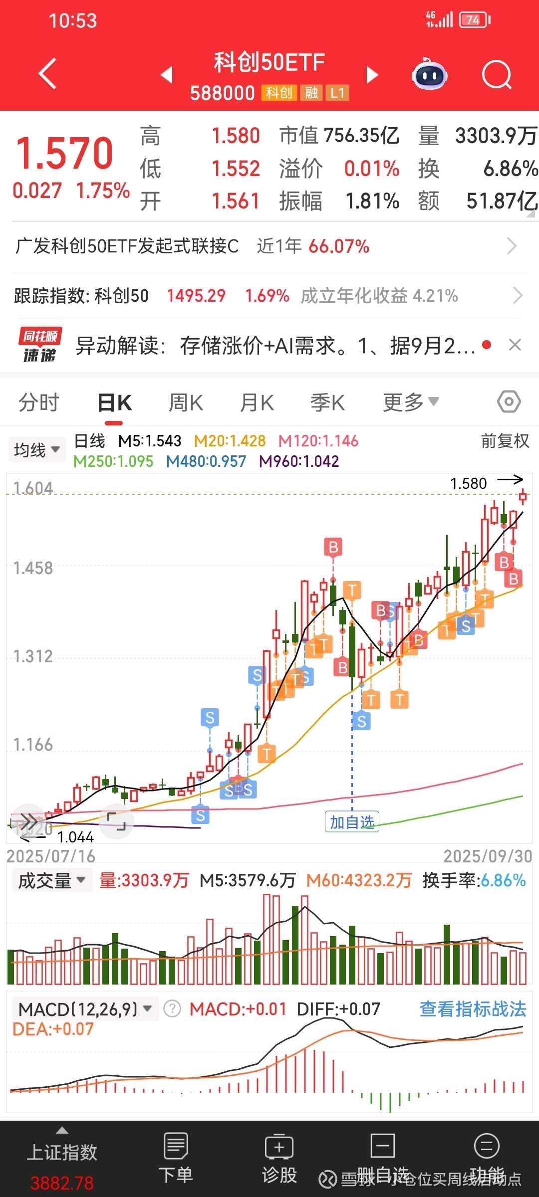持有科创50数量是276600股,价格1.57元,市值434262元