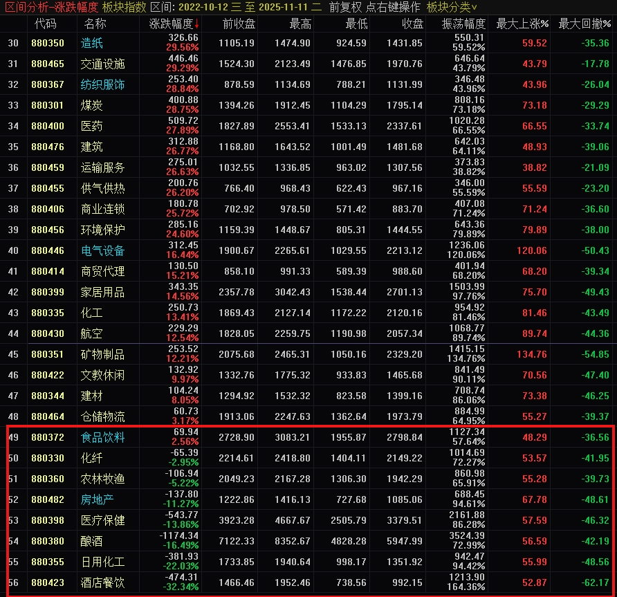 涨幅最小的确实是消费板块。