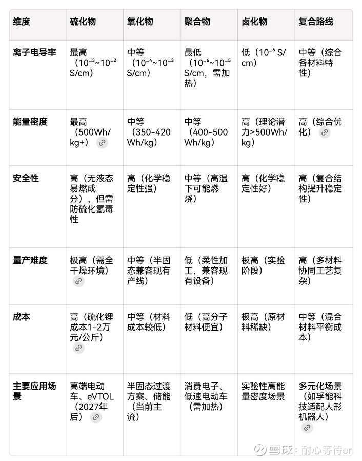 3、固态电池其他材料配套,是固态电池赛道投资最大弹性的环节。理由很简单:固态电池相比液态电池,需要突破攻关的核心技术差异就在第三环节,氧化物路线?硫化物路线?聚合物路线?复合物路线?