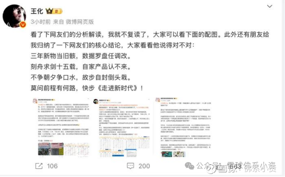 针对王化以诗回应,朱磊表示:“一个人为什么出发,决定了他能走多远。制造业讲究实实在在,核心科技靠打油诗是打不出来的。”此外,在解释“为啥要盯着小米卢伟冰一条转发不放”时,朱磊称格力的性格更像一个“工科男”,埋头实验室和生产线,在舆论场上确实常常显得慢半拍,“真相虽然迟到,但不会不到”。