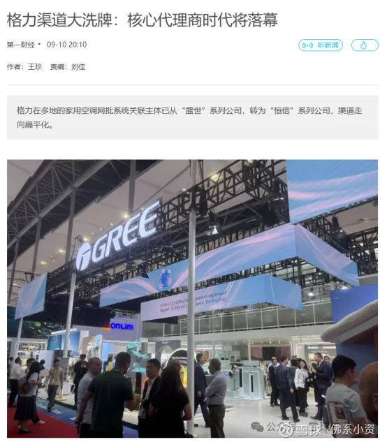 前几天第一财经发了一篇文章我也了解到,也是验证我对于格力判断:记者从多位零售商、经销商处了解到,格力在全国多地的网批系统已从“盛世”系列公司,转入新成立的“恒信”系列公司,渠道数字化改革开踢“临门一脚”。
