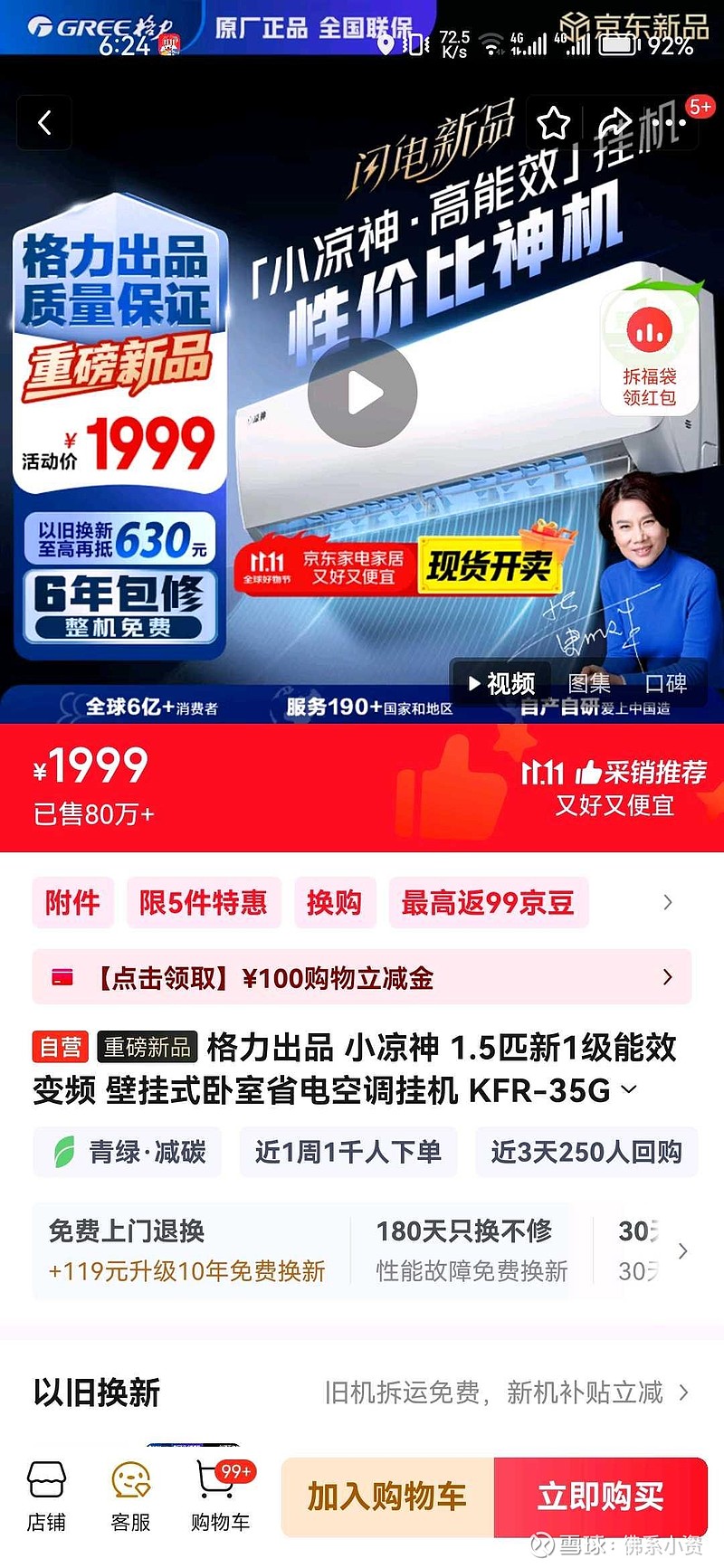 昨天卖了10万台? 现在都显示80万+了。我看雪球又有人吐槽了格力晶弘这样搞格力小凉神这样用,是低级商业行为。那么请这些人去做。以前格力2000元以下价格段,没有产品线说格力不搞低价格段,消费降级下会丢失了很多市场,格力领导不行。现在格力公司搞了线下用晶弘线上小凉神,领导又又不行,说公司领导这样策略能力不行。这些人真的是你行你上真的服了这些人$格力电器(SZ000651)$