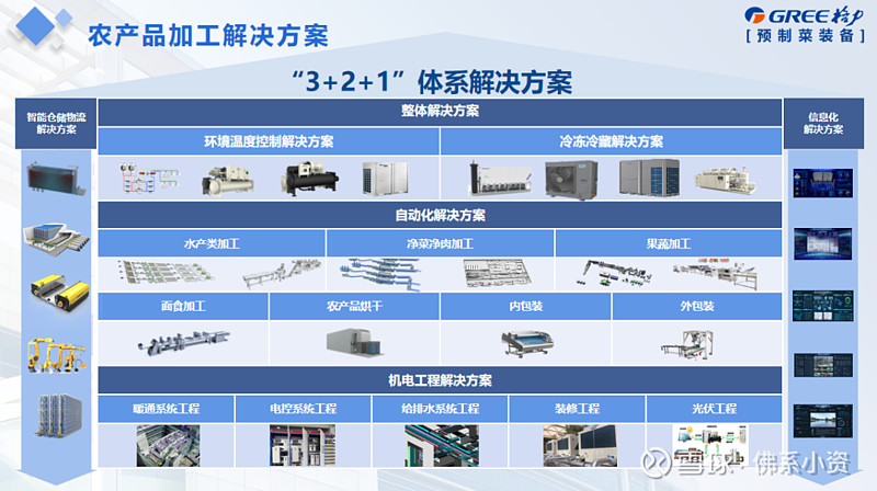 格力预制菜装备,承袭格力电器“掌握核心科技”的基因与十余年高端装备制造积淀,以“3+2+1”矩阵体系为核心,覆盖自动化加工产线、智能仓储物流、数智化信息平台,辅以冷冻冷藏保鲜与智能环境温控两大技术模块,为客户提供从田间到餐桌的全链条绿色智能农食工厂整体解决方案。