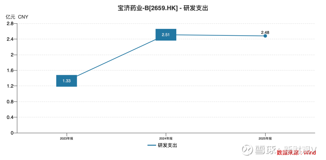 wind数据显示,2023~2025年,宝济药业研发开支分别为1.33亿元、2.51亿元和2.48亿元;同期,行政开支分别为0.46亿元、1.08亿元和1.05亿元。